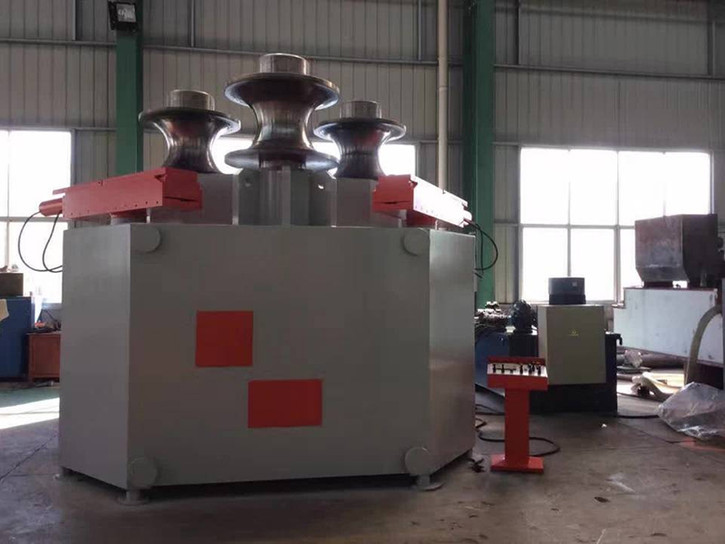 Машина с изгибом трубки с 3 рулонами приводится в движение гидравлическими двигателями и передачами. Оба боковых рулона гидравлически приводят к перемещению вертикально и могут вращаться вокруг фиксированной оси для выполнения изогнутого вертикального движения. Рулон -носитель и корректирующий направляющий рулон соответственно расположены на обеих сторонах рабочего рулона, чтобы обеспечить качество проката с асимметричным поперечным сечением (например, угловая сталь). Он может свернуть различные секции, включая круглую трубку, квадратную трубку и т. Д.